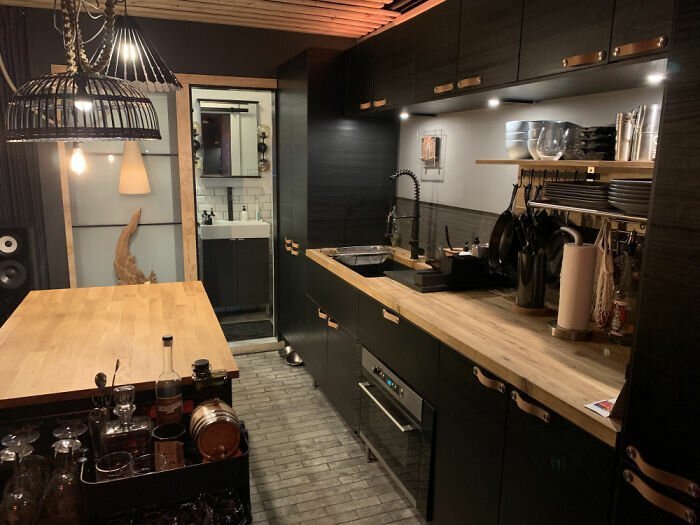 The building process required patience, precision, and a deep sense of imagination. Will arranged the 11 containers with purpose, forming a unified living space that feels both modern and inviting. Large windows were incorporated into the design so natural light could flow through every room. The open floor plans encourage a sense of movement and ease, while the industrial texture of the containers brings character and identity to the entire home. The combination of sleek finishes and raw metal creates a visual style that remains striking from every angle.