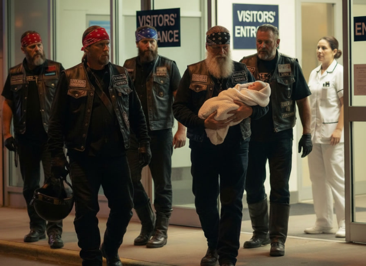I remained frozen in the hallway, trying to understand how her voice and her laughter could disappear from the world so suddenly. While my grief settled like a heavy fog, something unexpected caught my attention. Through the glass, I noticed six men in leather vests walking out of the maternity ward with her newborn son.
