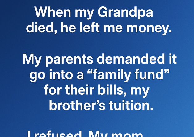 When my grandfather passed away, he left me a generous financial gift that carried deep meaning. My parents soon proposed placing the entire amount into a shared family fund. They explained that the money could cover ongoing household expenses and fully support my brother’s upcoming college tuition.